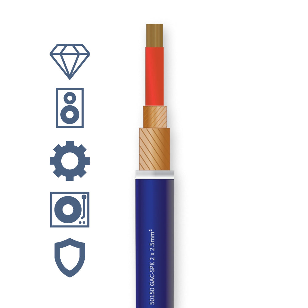 The Gotham 50150 2×2.5 mm² is a professional-grade dual-conductor speaker cable engineered for high-performance loudspeaker installations. Each conductor contains a fine-stranded LFOC copper core (2.5 mm²) surrounded by foam‑skin polyethylene insulation for low capacitance and high fidelity. The pair is encased within a durable PVC jacket (approx. 6.8 mm diameter), offering excellent flexibility, mechanical protection, and ease of routing. With robust conductor thickness and insulation, this cable delivers clean, distortion-free audio over long runs in both fixed installations and mobile setups, making it ideal for studio monitor feeds, home theater systems, and stage loudspeaker connections.